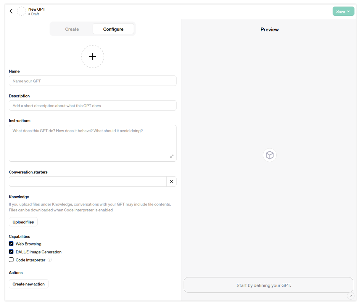 컴퓨터에서 문서 작업을 하면 저장 버튼을 눌러야 하는 것처럼 GPTs에서 앱을 개발할때도 변경 사항을 저장해야 한다.